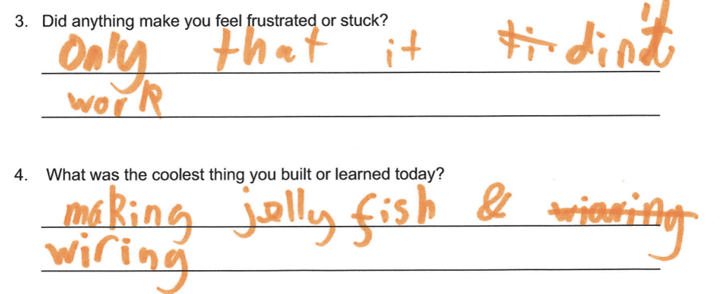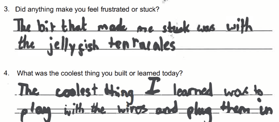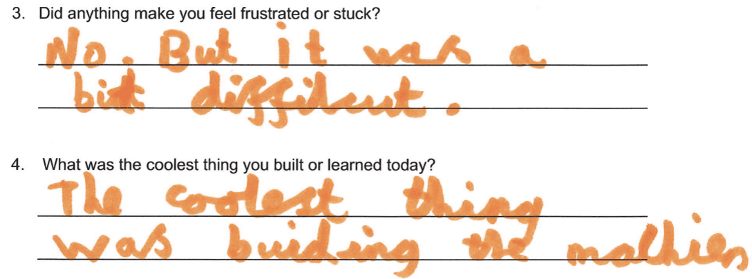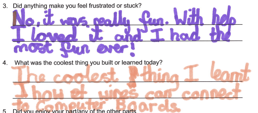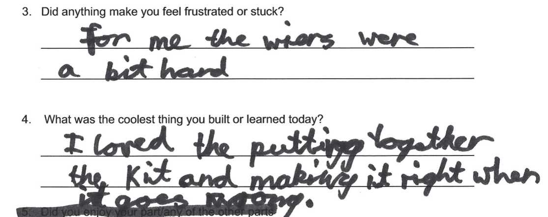 We conducted two rounds of MVP testing with children in schools in London. To understand how their views on engineering changed from the workshop, we asked them what they thought engineering was before and after. We also asked them to fill out a feedback form, asking what they thought about the kit.