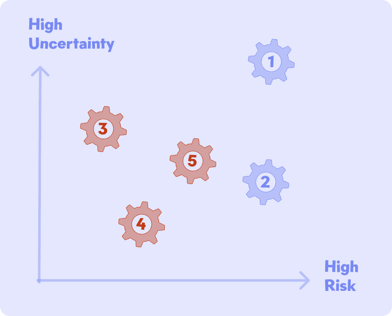 We systematically mapped our core hypotheses against two criteria: level of uncertainty and potential risk to the business. From this analysis, we identified five critical product and business assumptions that required testing.